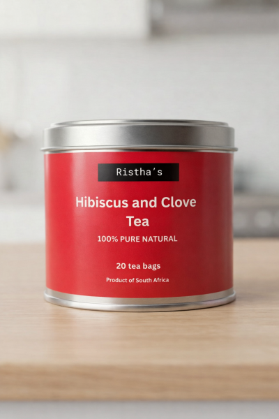 Ristha’s Hibiscus & Clove Tea A vibrant, tangy infusion crafted to refresh your spirit and fortify your wellbeing. Ristha’s Hibiscus & Clove pairs the deep, floral tartness of premium hibiscus petals with the bold, earthy warmth of cloves. This striking crimson blend offers a sophisticated flavor profile that is as revitalizing as it is comforting. Whether enjoyed as a steaming cup of tranquility or a crisp, iced refresher, this tea is your daily ritual for radiant health and inner balance.